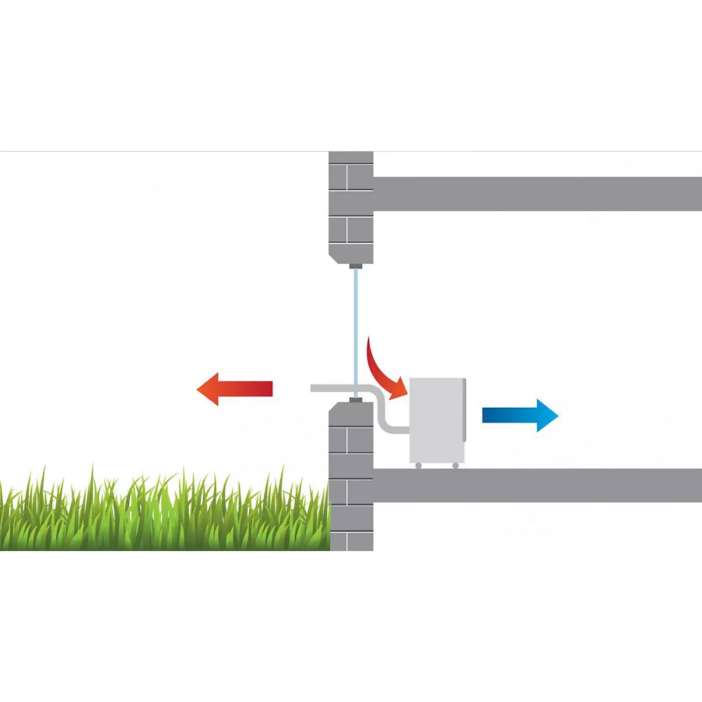 Le tuyau peut être placé dans une fenêtre via le kit d’évacuation fourni.