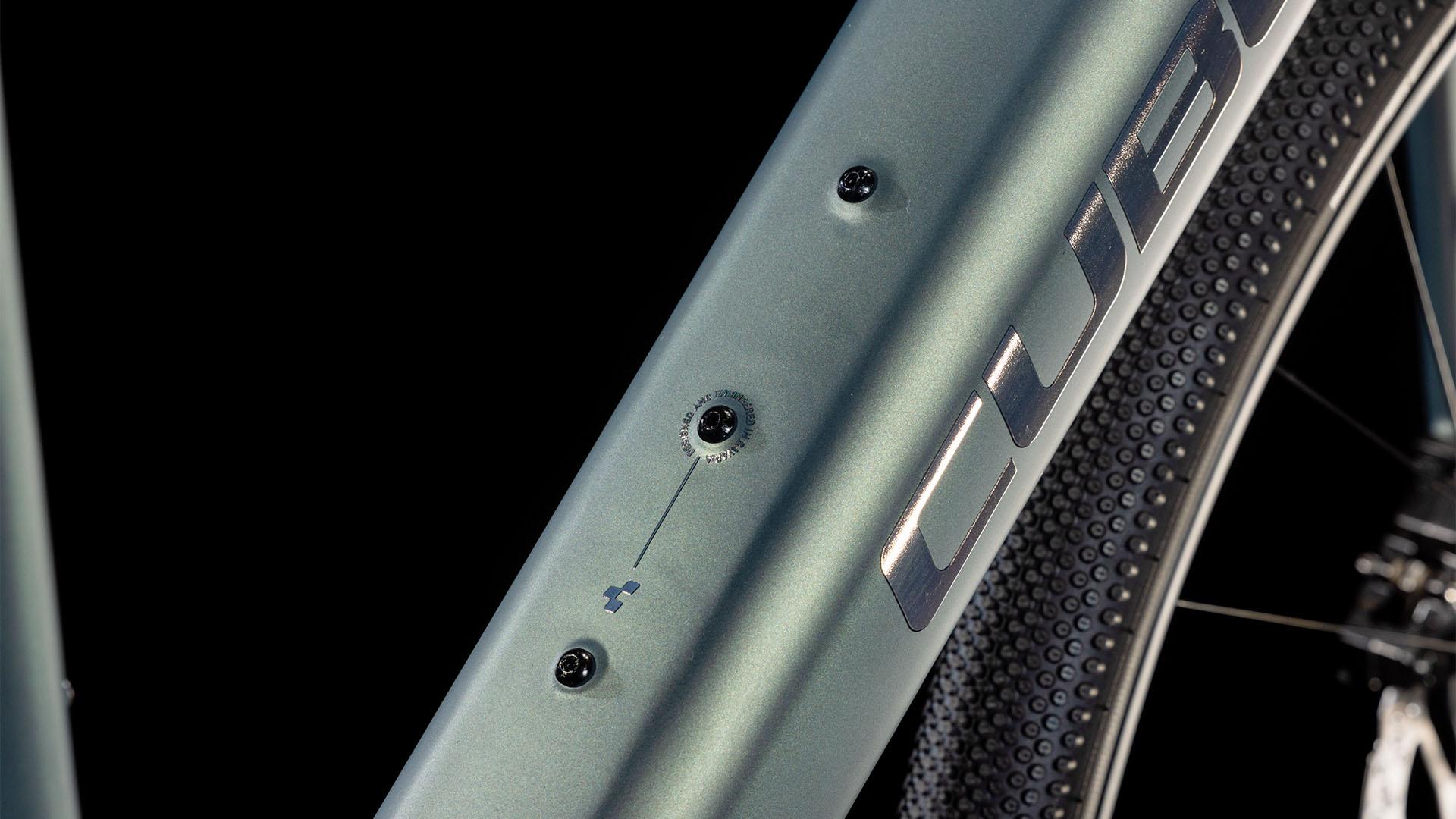 Empruntant beaucoup à notre expérience dans la construction de vélos de gravel légers, rapides et difficiles, le cadre en carbone du Nulane Hybrid C:62, aux courbes organiques et à l’allure épurée, est empreint d’une intention sérieuse. Il y a de l’espace pour les pneus jusqu’à 50 mm, même avec des garde-boue installés. Nous avons ajouté des points de fixation pour le porte-bagages à l’arrière et sur la fourche en carbone, ce qui vous permet de faire facilement le trajet quotidien ou une randonnée plus longue. L’unité de commande du système d’entraînement Bosch est intégrée dans le tube supérieur – avec une mini-manivelle à distance – et vous pouvez ajouter une batterie d’appoint PowerMore de 250 Wh au cadre pour une plus grande autonomie. Et, sur le plan technique, le serrage de la selle dissimulé, le guide-chaîne à montage direct, l’interface de la béquille à montage plat, l’extrémité arrière Boost et la compatibilité UDH font de ce vélo un vélo à l’épreuve du temps.