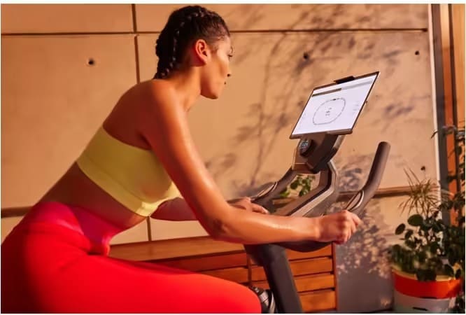 Vous pouvez pédaler à travers les Alpes, Paris ou le désert de l’Arizona. L’écran affiche le parcours en temps réel. L’effort s’adapte au relief du terrain simulé.